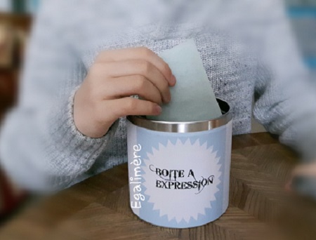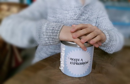 « Quand on est fâché ou content, quand on a des choses à dire mais qu’on n’a pas envie de les dire directement, on peut les noter sur un papier, noter ce qu’on ressent… Après, on met le papier dans une boîte. A la fin de la journée, on regarde s’il y a des messages dans la boîte à expression. S’il y en a, on les lit et on discute de ce qui s’est passé. Et quand il y a un problème, toute la famille essaie de trouver des solutions pour ne pas que ça recommence« .