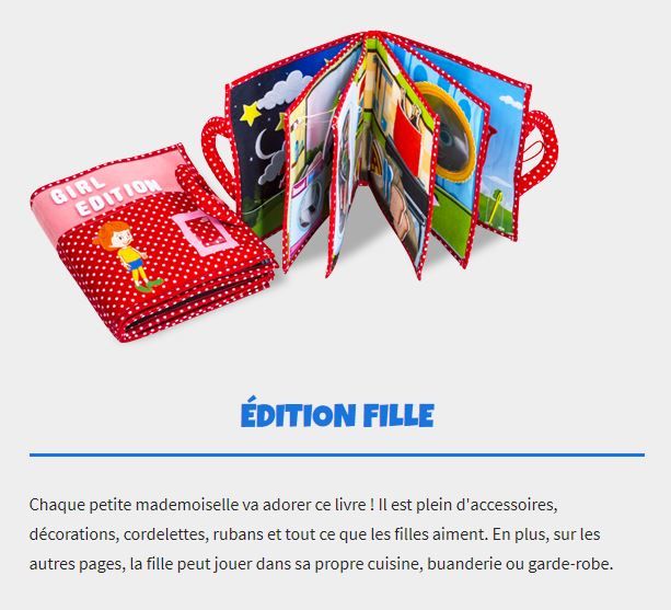 Et pour ne pas se tromper, les couvertures et les pages de ces livres d’éveil sont bleues pour les garçons et roses pour les filles. Oui, c’est écrit dessus cette fois !